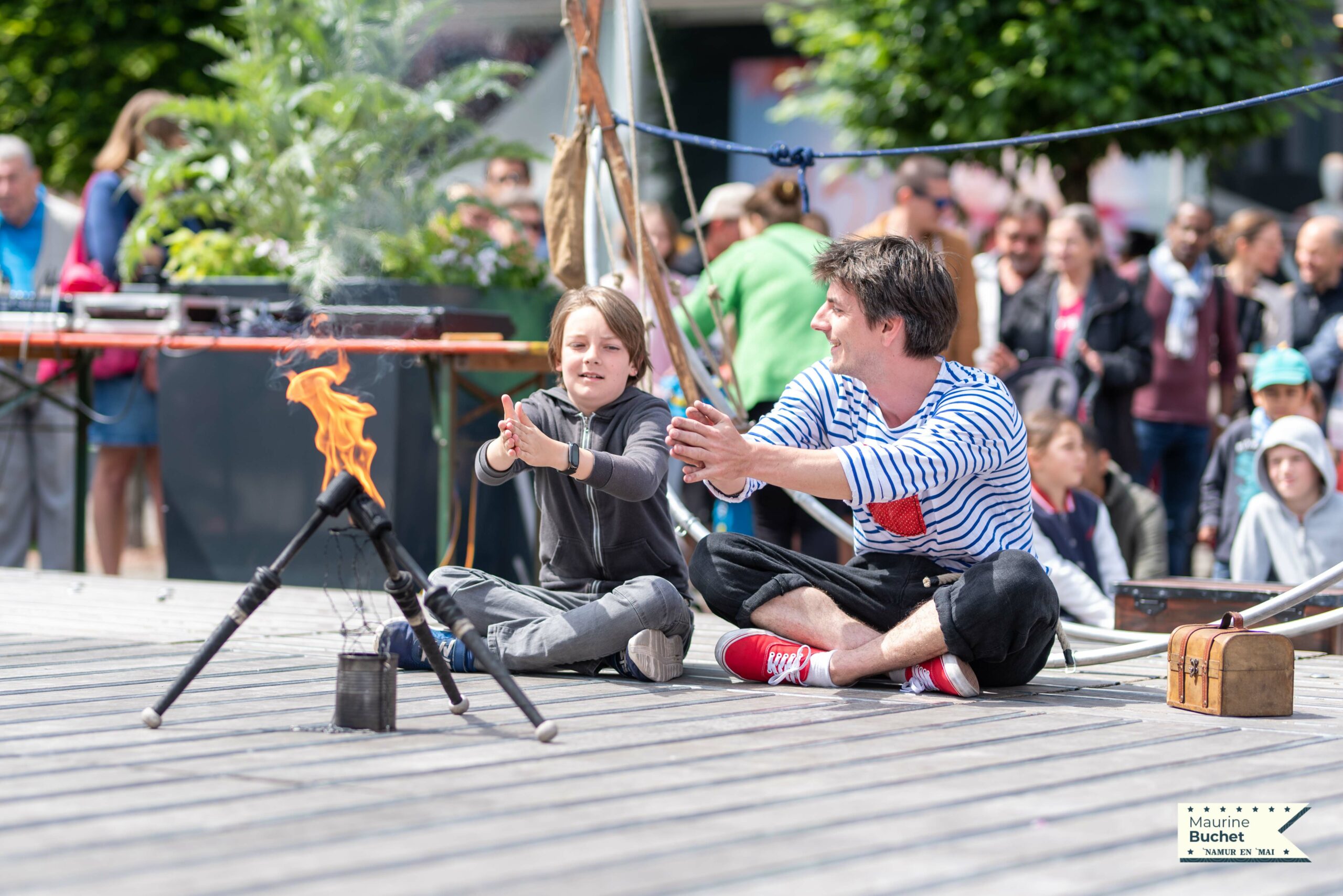 Aboard his sailing rig, the juggling is soft and the slack rope sways with ease and playfulness. Always against the wind and tide!